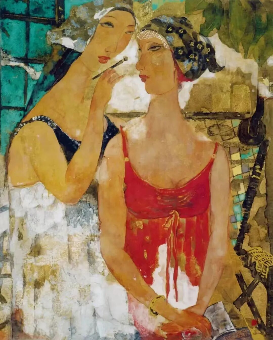 颜晓萍《金粉佳丽》60×50cm 纸本水墨 矿物色、箔 2007年